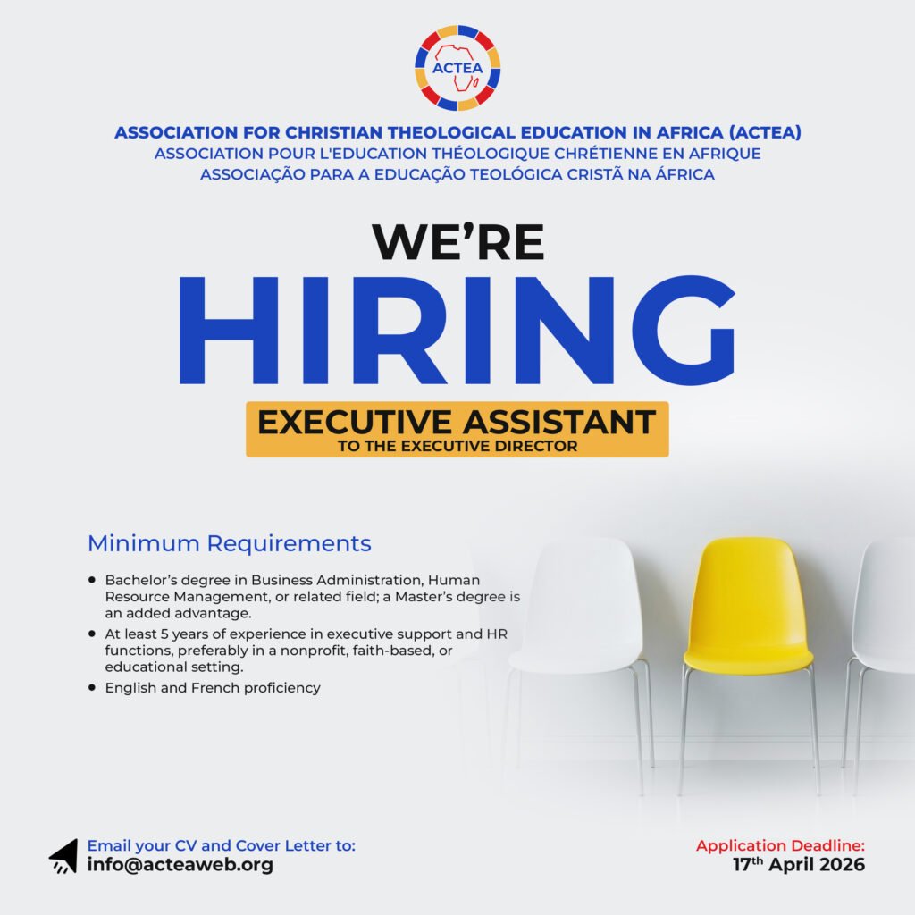 • Key Attributes: A committed Christian with high integrity, strict confidentiality, cross-cultural sensitivity, and a passion for ACTEA’s mission in African theological education.